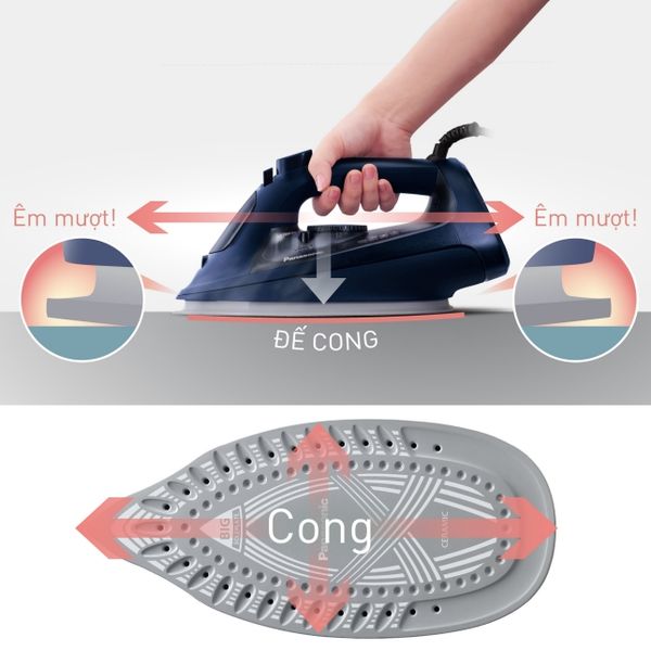 Mặt đế cong hạn chế vướng víu khi di chuyển, tránh làm nhăn lại vải. Tay cầm chắc chắn, đầm tay, tạo cảm giác thoải mái khi sử dụng trong thời gian dài.