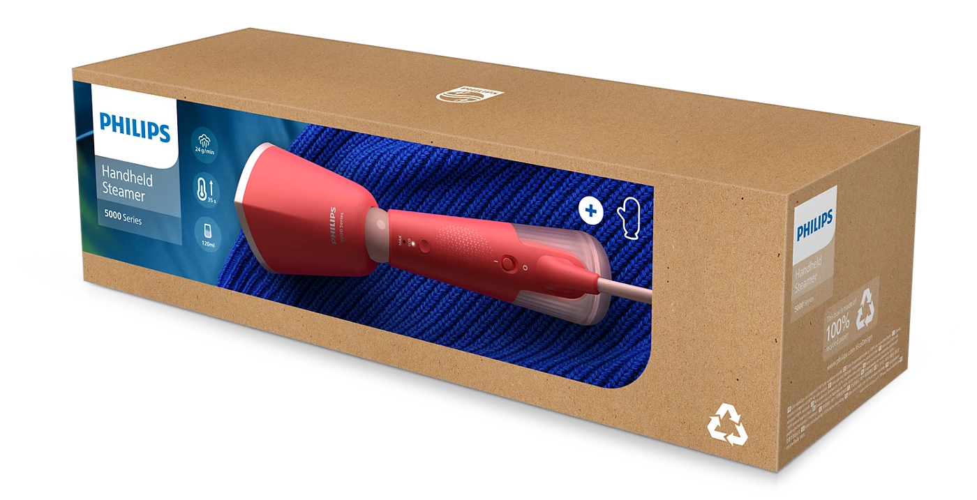 Bàn ủi hơi nước cầm tay Series 5000 STH5020/40 mang đến giải pháp ủi quần áo nhanh chóng và tiện lợi, chỉ mất 35 giây để sẵn sàng sử dụng. Với thiết kế gọn nhẹ, hợp thời trang và nhiều tính năng hiện đại, sản phẩm giúp bạn dễ dàng làm phẳng mọi loại vải – từ trang phục mỏng tinh xảo đến vải dày khó ủi – mà không cần dùng đến bàn ủi truyền thống hay ván ủi cồng kềnh.
