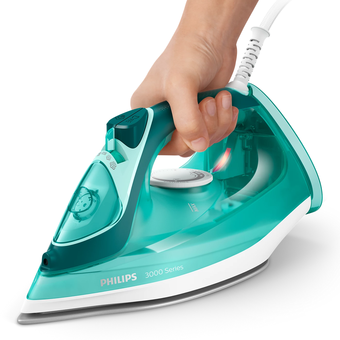 Bàn ủi hơi nước Philips Series 3000 DST3030/70 được thiết kế để giúp việc ủi quần áo trở nên nhanh chóng và nhẹ nhàng hơn. Công suất mạnh mẽ 2400 W cho khả năng làm nóng nhanh chỉ trong 35 giây, kết hợp hơi phun liên tục 40 g/phút và hơi tăng cường 180 g giúp xử lý nhanh những nếp nhăn cứng đầu. Mặt đế bằng gốm chống dính, trượt êm trên mọi loại vải, cùng ngăn chứa nước lớn 300 ml cho phép ủi nhiều quần áo hơn chỉ với một lần châm nước.
