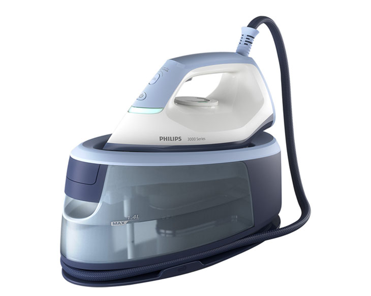 Bàn ủi hơi nước Philips Series 3000 PSG3000/20 giúp rút ngắn đến 25% thời gian ủi, mang đến trải nghiệm ủi quần áo nhẹ nhàng và tiện lợi. Với áp suất bơm tối đa 6 bar, hơi phun liên tục 120g/phút và hơi phun tăng cường 350g, sản phẩm dễ dàng xử lý mọi nếp nhăn. Kích thước nhỏ gọn, dung tích bình nước 1,4L và mặt đế gốm chống xước giúp việc ủi trở nên đơn giản và hiệu quả hơn bao giờ hết.