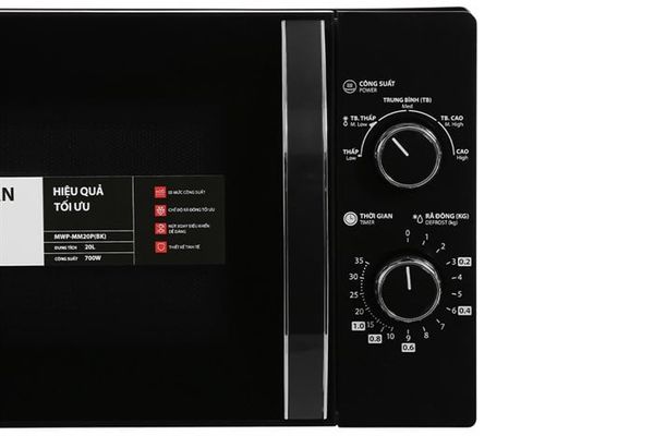 Toshiba MW2-MM20P(BK) sử dụng núm vặn cơ học bền bỉ, thao tác đơn giản, có hướng dẫn bằng cả tiếng Việt và tiếng Anh. Người dùng dễ dàng điều chỉnh thời gian và công suất ngay cả khi đang bận rộn nấu nướng, phù hợp cho mọi lứa tuổi.