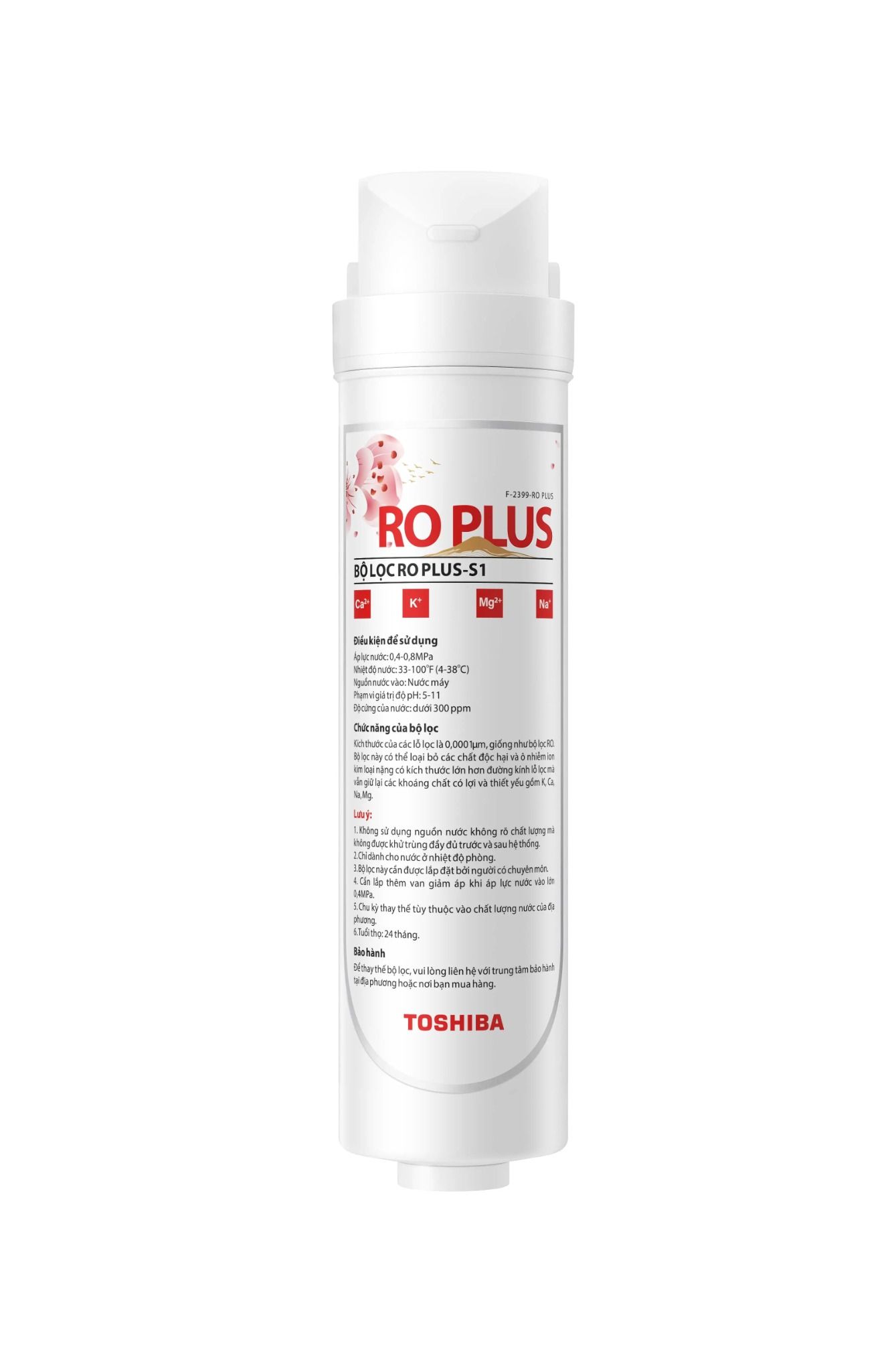 Lõi lọc Toshiba F-2399-RO PLUS – Công nghệ lọc tiên tiến, giữ trọn khoáng chất tự nhiênTrang bị công nghệ RO Plus độc quyền từ Toshiba, lõi lọc F-2399-RO PLUS loại bỏ đến 99,99% vi khuẩn, kim loại nặng và tạp chất có hại, trong khi vẫn giữ lại các khoáng chất thiết yếu như canxi, magie, kali và natri. Với màng lọc siêu nhỏ 0.0001 micron và thiết kế theo tỷ lệ vàng, sản phẩm mang lại nguồn nước sạch, tinh khiết và giàu dưỡng chất. Tương thích với các dòng máy lọc nước Toshiba TWP-W2398SVN(M) và TWP-W2399SVN(M), thời gian thay lõi lên đến 24 tháng – tiết kiệm và hiệu quả cho gia đình bạn.