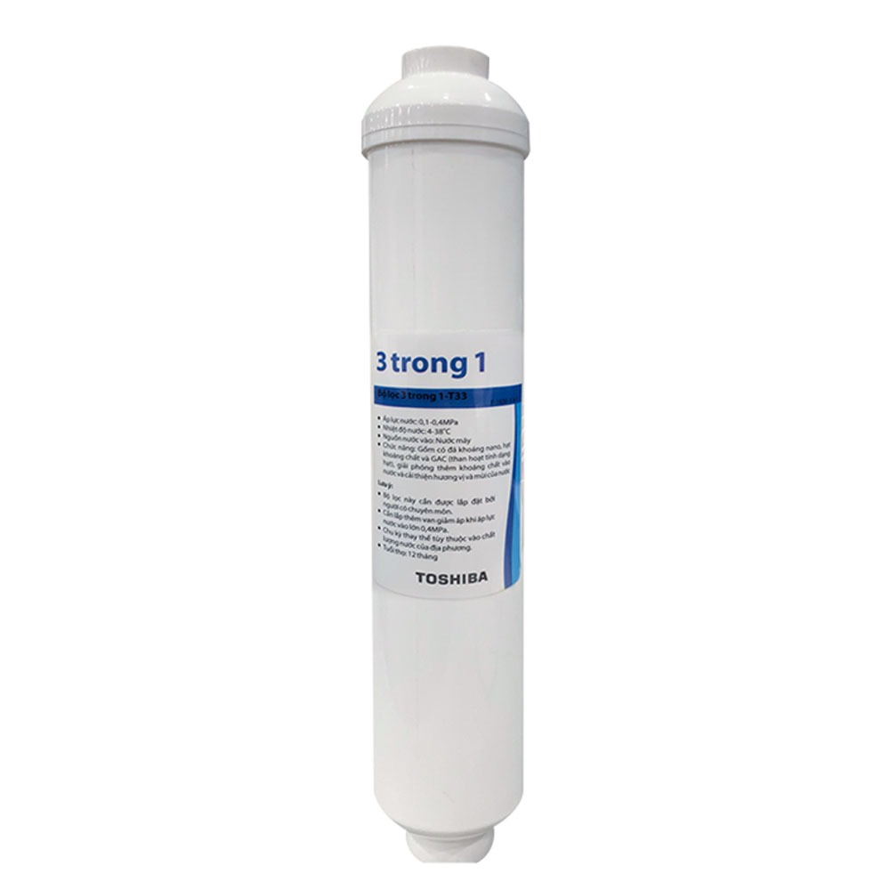 Lõi lọc nước TOSHIBA F-3 IN 1 là bộ phận quan trọng trong hệ thống máy lọc nước, chịu trách nhiệm xử lý nước đầu vào bằng cách loại bỏ bùn đất, rỉ sét, tạp chất lơ lửng và các chất Clo, Clorin còn dư. Sản phẩm giúp bảo vệ các lõi lọc phía sau và nâng cao chất lượng nước đầu ra, đảm bảo nguồn nước sạch, an toàn cho người dùng.