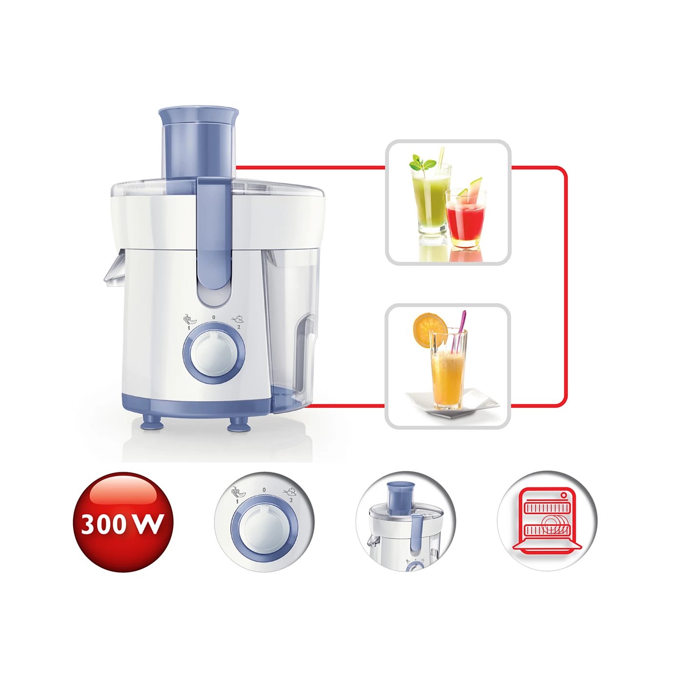 Máy ép trái cây Philips HR1811/71 với công suất 300W, thiết kế nhỏ gọn, phù hợp cho mọi không gian bếp. Máy sở hữu 2 tốc độ ép cho cả trái cây mềm và cứng, lưới lọc vi kim loại giúp giữ nguyên hương vị và dưỡng chất. Ngăn chứa bã 500ml, mọi bộ phận tháo rời đều rửa được bằng máy rửa chén, giúp vệ sinh dễ dàng.