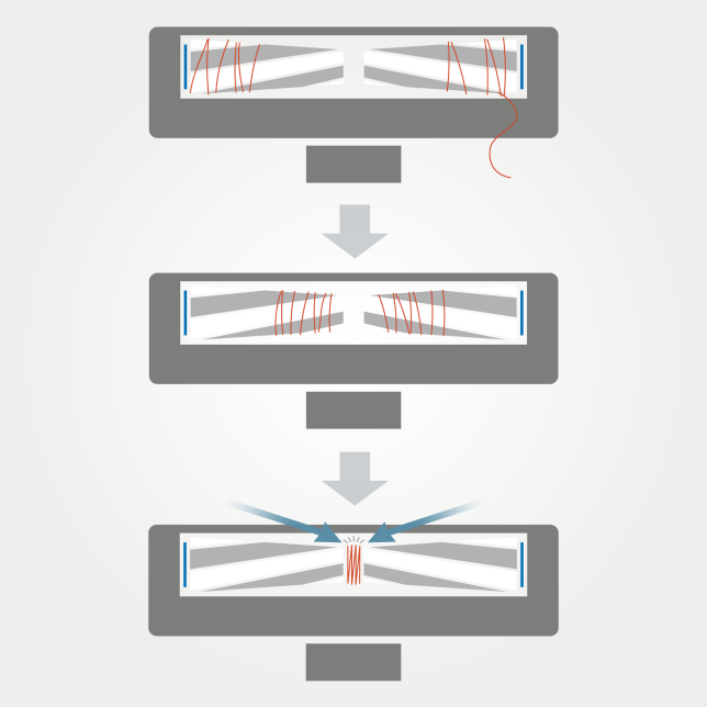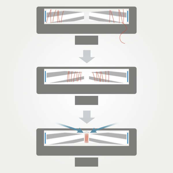 - Tóc rối sẽ được đưa vào phía giữa của con lăn đôi.