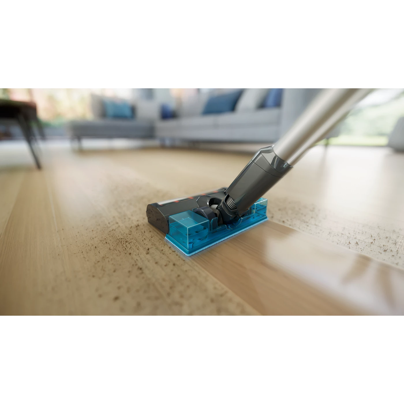 Mô-đun Aqua sử dụng vải sợi nhỏ ẩm, dễ tháo lắp, giúp lau sạch các vết bẩn và bụi bám trên sàn cứng ngay khi đang hút bụi, tiết kiệm thời gian và công sức.
