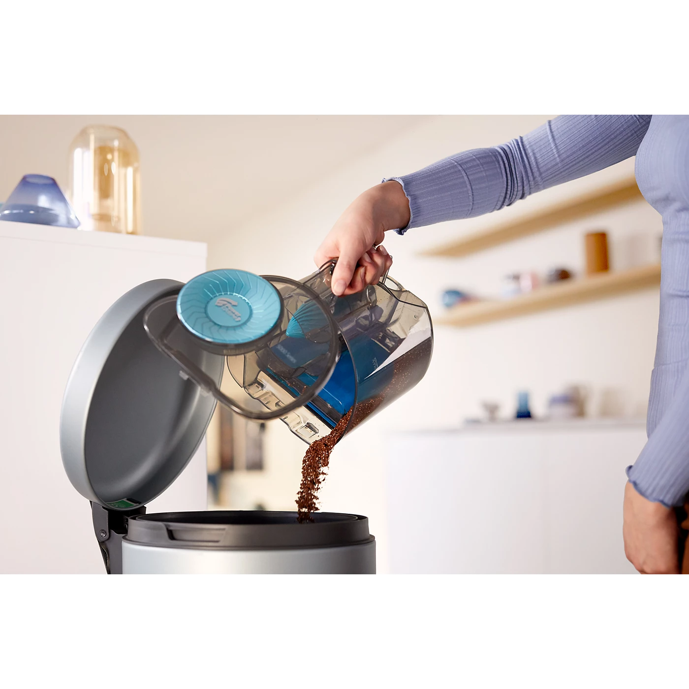 Ngăn chứa bụi dung tích 1,5L, có thể tháo và đổ chỉ bằng một tay, hạn chế bụi bay ngược ra ngoài.