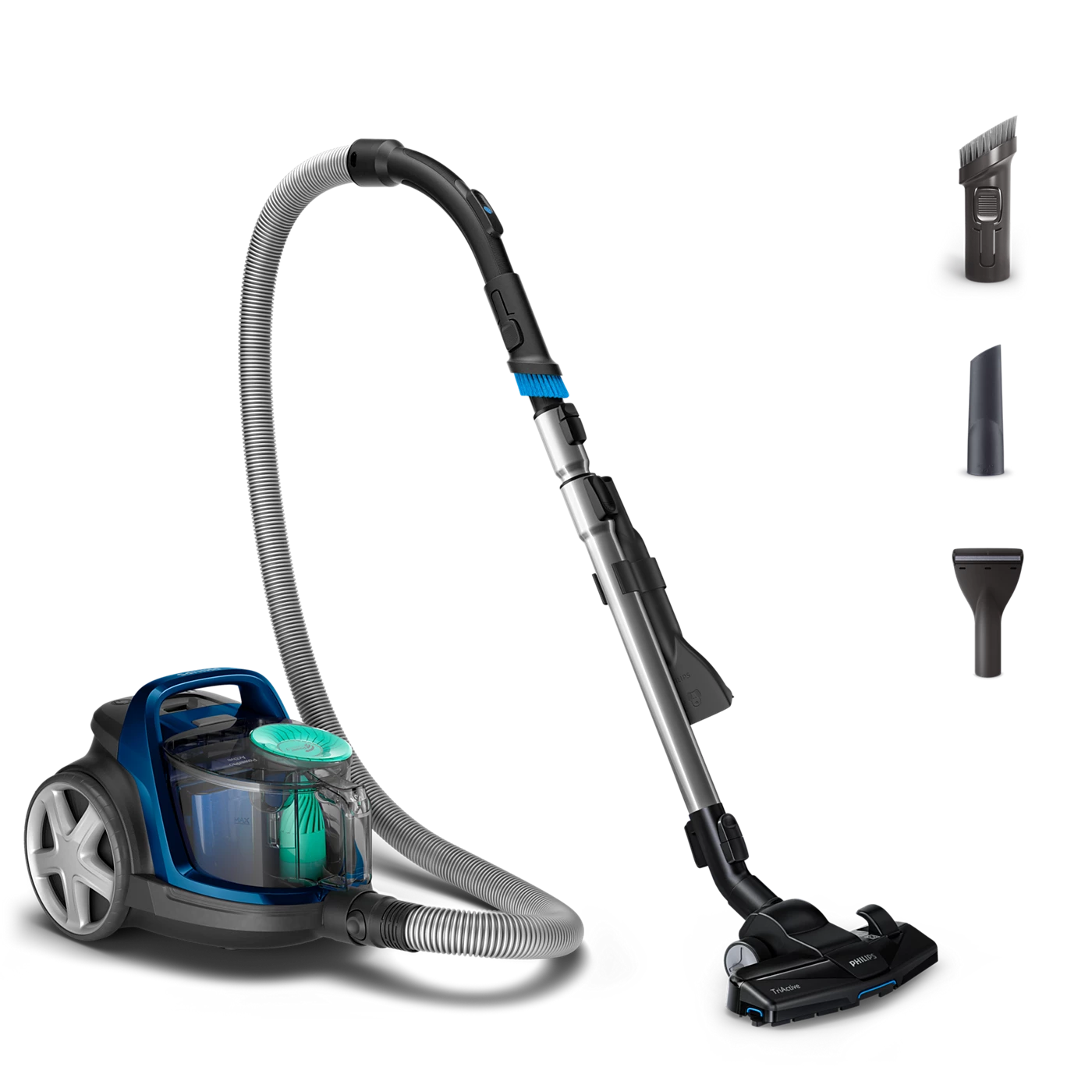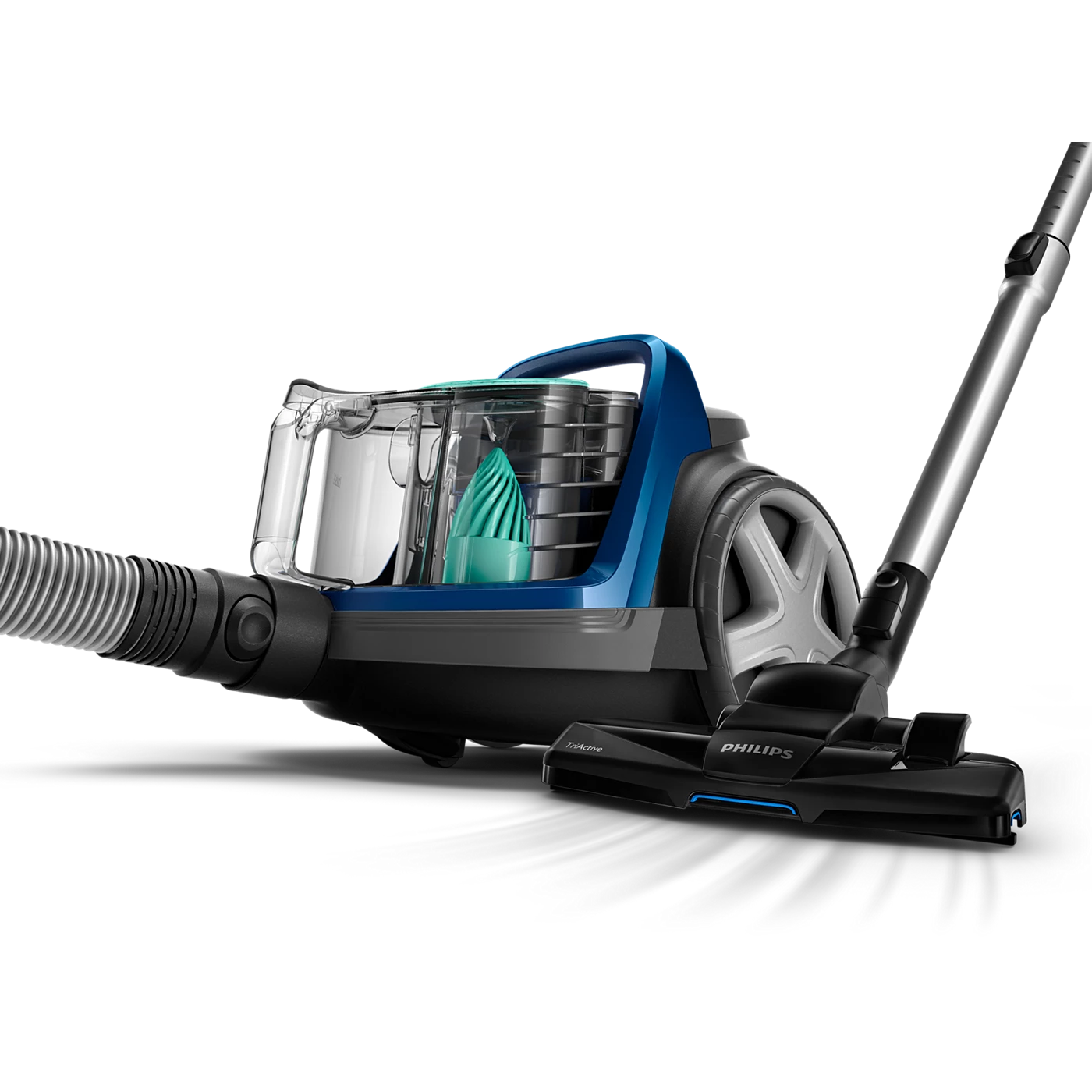 Đầu hút TriActive kết hợp 3 thao tác: hút sâu bụi trong thảm, thu gom bụi lớn qua cửa hút phía trước và làm sạch dọc theo tường nhờ bàn chải hai bên.