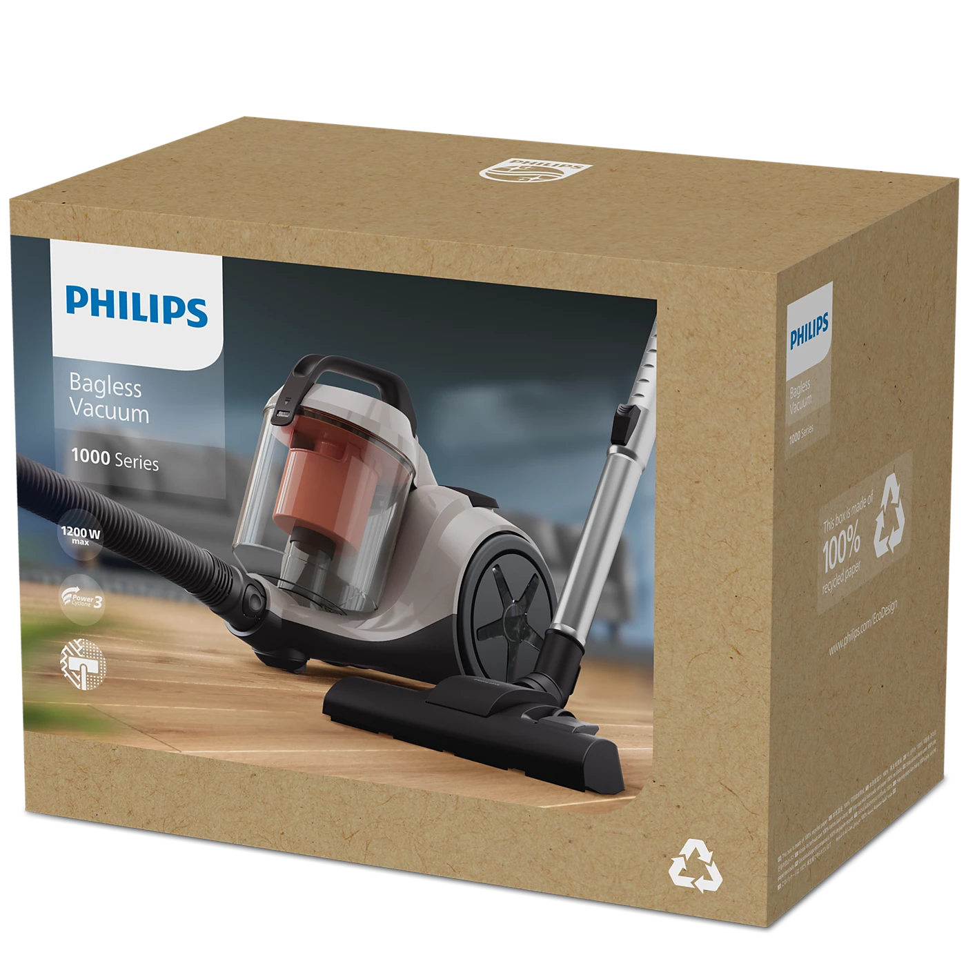 Máy hút bụi không túi Series 1000 XB1012/10 mang đến giải pháp làm sạch hiệu quả trong thiết kế nhỏ gọn và dễ sử dụng. Trang bị động cơ 1200 W, công nghệ PowerCyclone 3 và hệ thống lọc 3 giai đoạn, sản phẩm giúp hút bụi mạnh mẽ, lọc sạch đến 99,9% hạt bụi, đồng thời tiết kiệm không gian lưu trữ.