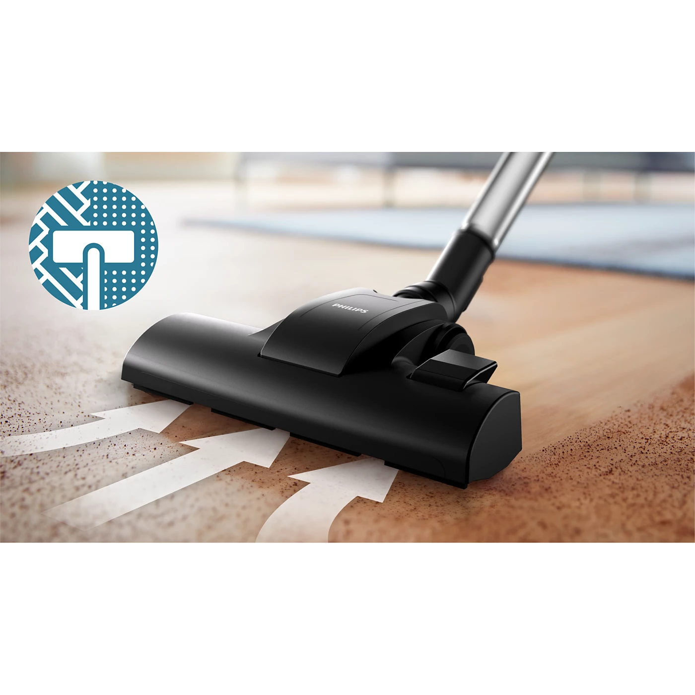 Tạo lực hút mạnh giúp làm sạch hiệu quả trên cả sàn cứng và thảm, mang lại không gian sống tươi mới.