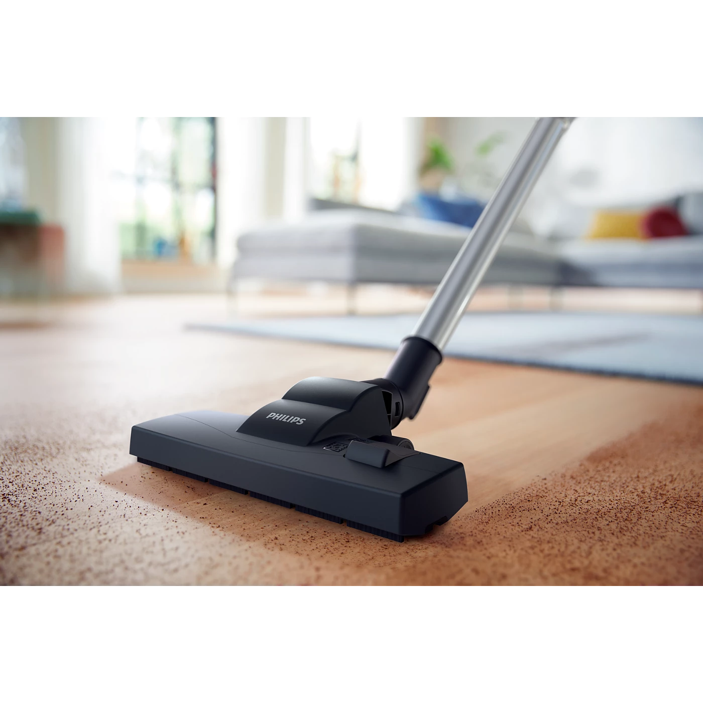 Dễ dàng điều chỉnh bằng bàn đạp chân để tối ưu khả năng vệ sinh trên cả sàn cứng và thảm.