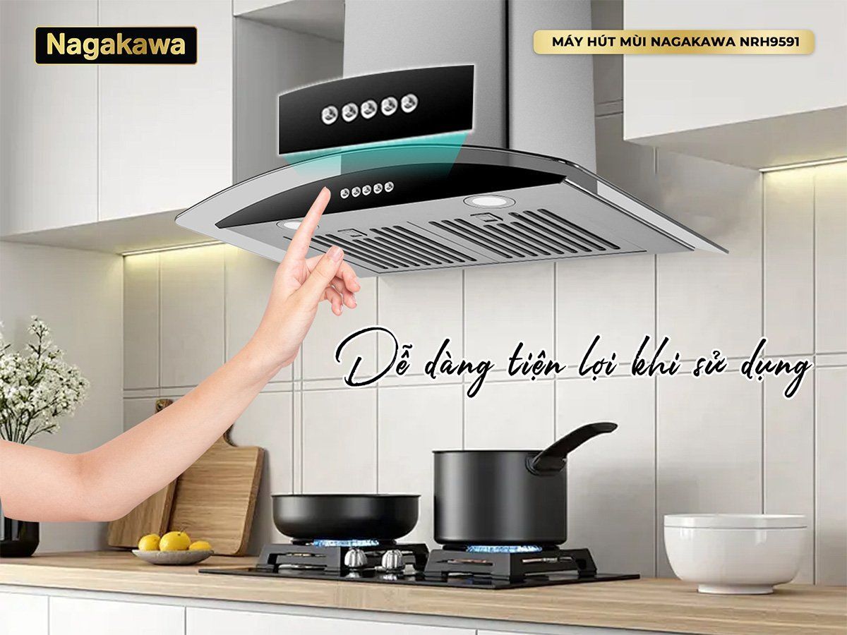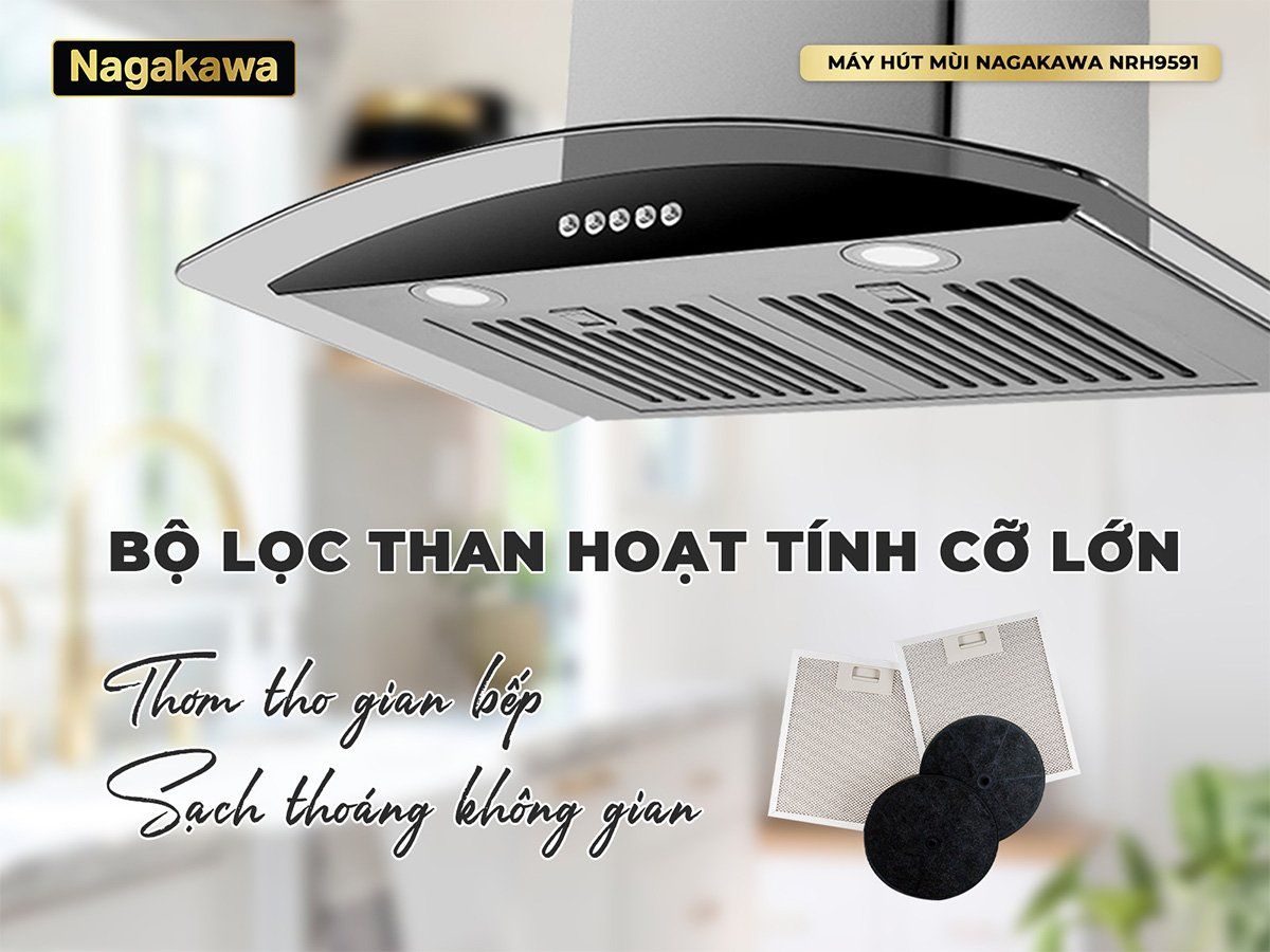 Máy hút mùi Nagakawa NRH9591 là lựa chọn hoàn hảo cho không gian bếp hiện đại với thiết kế kính cong tinh tế và thân inox siêu bền. Sản phẩm có công suất hút mạnh mẽ, khử mùi nhanh chóng và vận hành cực kỳ êm ái. Bộ lọc inox đa lớp kết hợp than hoạt tính giúp không gian bếp luôn thông thoáng, sạch mùi dầu mỡ và khói thức ăn.
