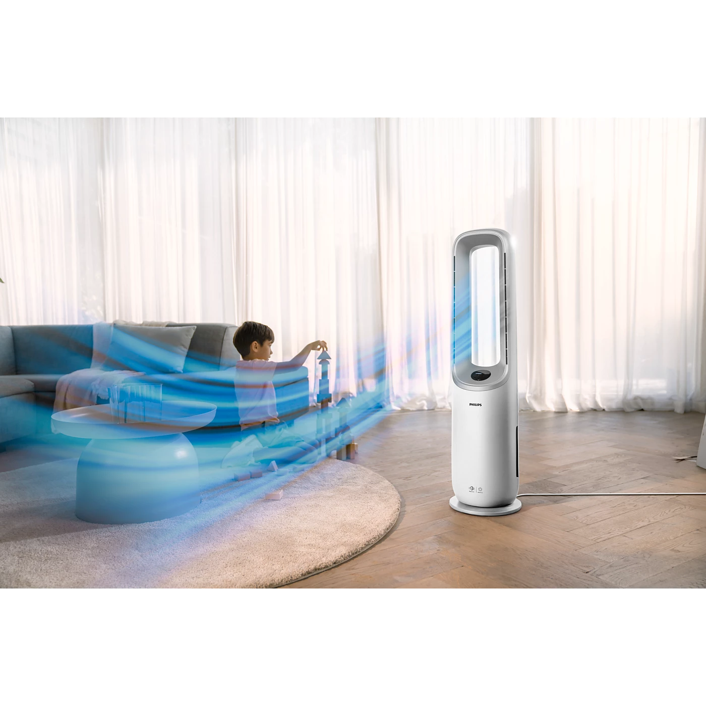 Thiết kế không cánh quạt cho luồng gió êm ái, ổn định và an toàn. Lưu lượng gió lên đến 1730 m³/giờ, xoay 350° linh hoạt, 10 mức tốc độ tùy chỉnh, mang lại sự dễ chịu trong mọi điều kiện thời tiết.