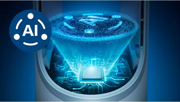 Tích hợp cảm biến AeraSense và công nghệ AI, máy tự động phát hiện chất lượng không khí, điều chỉnh hiệu suất phù hợp theo thói quen sử dụng, giữ tiếng ồn và điện năng ở mức thấp nhất.