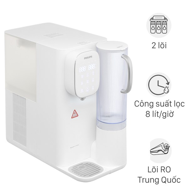Máy lọc nước để bàn RO nóng lạnh Philips ADD6912WH/74 mang đến giải pháp nước uống sạch tiện lợi ngay tại nhà. Với thiết kế nhỏ gọn, sang trọng, máy phù hợp với nhiều không gian như phòng khách, nhà bếp hay văn phòng làm việc. Công nghệ lọc RO tiên tiến giúp loại bỏ tạp chất, vi khuẩn và các kim loại nặng, đảm bảo nguồn nước an toàn và tinh khiết cho cả gia đình.