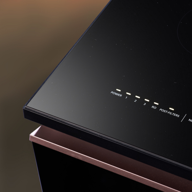 Máy được thiết kế tối giản với cửa gương đen sang trọng, kết hợp cùng đường viền rosegold sắc sảo, mang đến vẻ ngoài cao cấp phù hợp với mọi phong cách nội thất. Bề mặt kính cường lực bền bỉ gấp 4 lần kính thông thường, chống trầy xước hiệu quả.