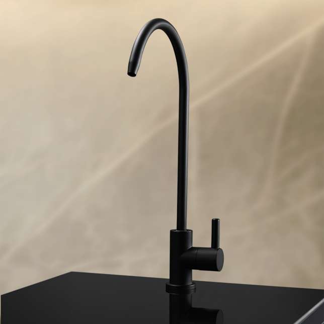 Vòi nước được phủ màu đen cao cấp, giúp hạn chế bám bẩn và dễ vệ sinh, đồng thời tạo điểm nhấn hài hòa trong không gian bếp hiện đại.