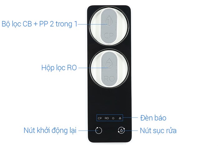 | Tiện ích | Đèn báo tuổi thọ bộ lọc Tự động sục rửa màng lọc RO Chế độ cút nối nhanh dễ dàng thay lõi Thiết kế không bình chứa chống nhiễm khuẩn Thiết kế các lõi lọc QuickTwist dễ thay thế Ngừng hoạt động khi áp lực nước thấpCảm biến tự động tắt nguồn cấp nước khi phát hiện rò rỉ |