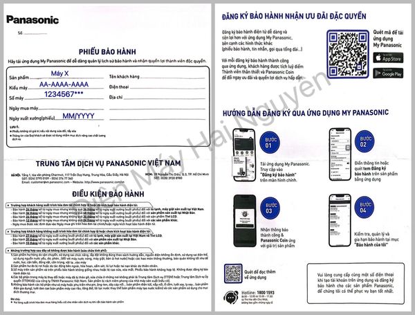 - Võ thùng + phiếu bảo hành serial trùng nhau. Bảo hành bằng mã QR