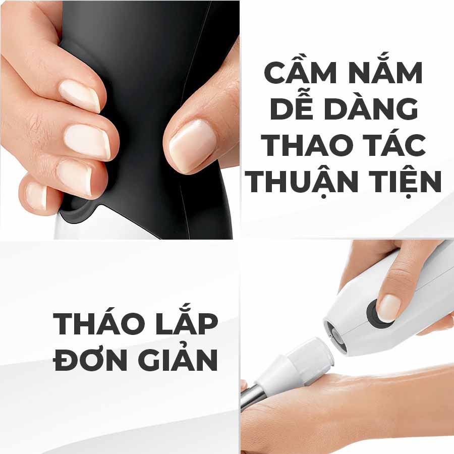 Giúp người dùng cầm nắm thoải mái, không bị mỏi tay khi sử dụng lâu. Chất liệu tay cầm bọc cao su mềm, chống trơn trượt, giúp thao tác chắc chắn hơn ngay cả khi tay ướt.