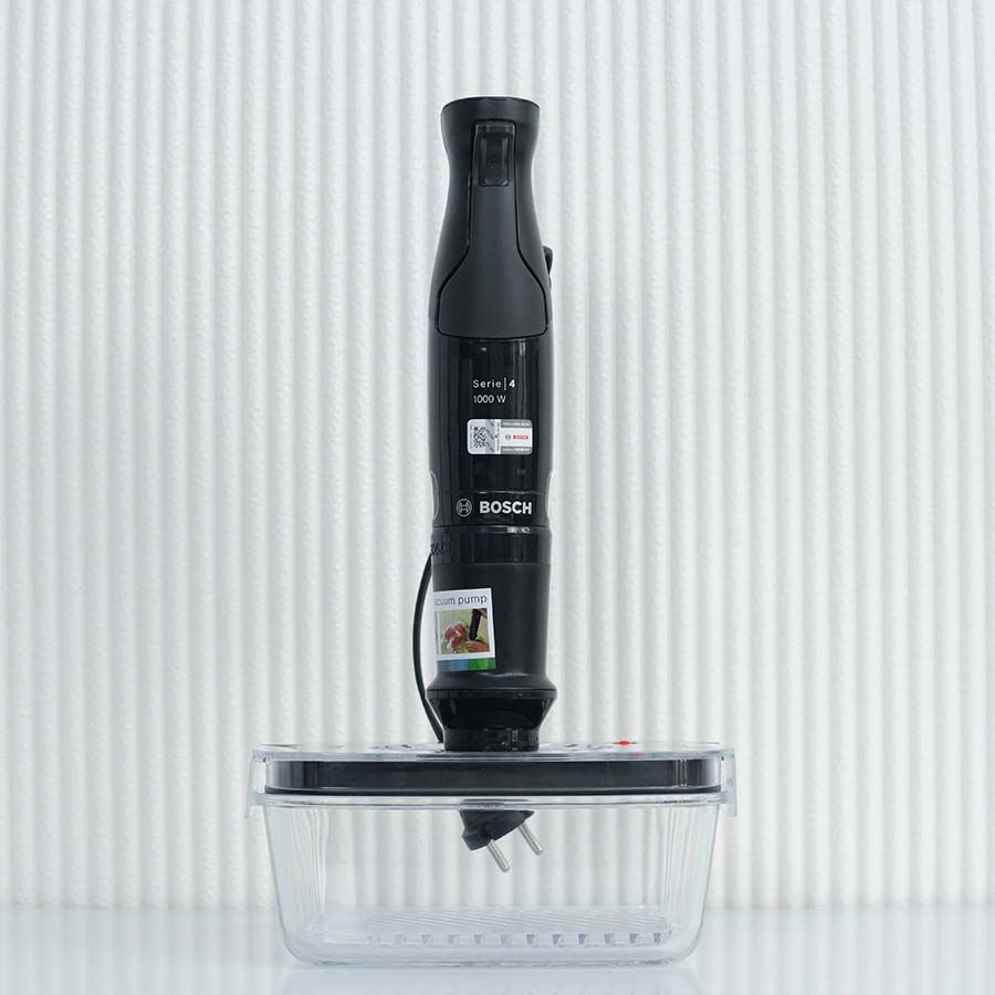 Đi kèm phụ kiện hút chân không. Tháo chân máy xay, gắn máy bơm chân không vào máy xay cầm tay sẽ giúp thực phẩm thơm mỗi ngày.