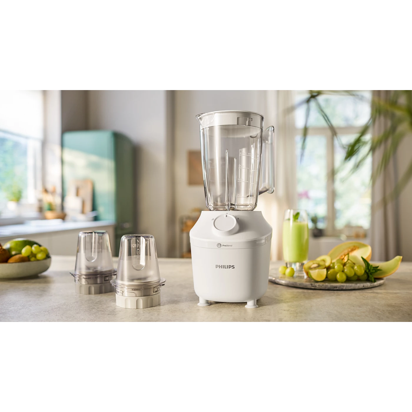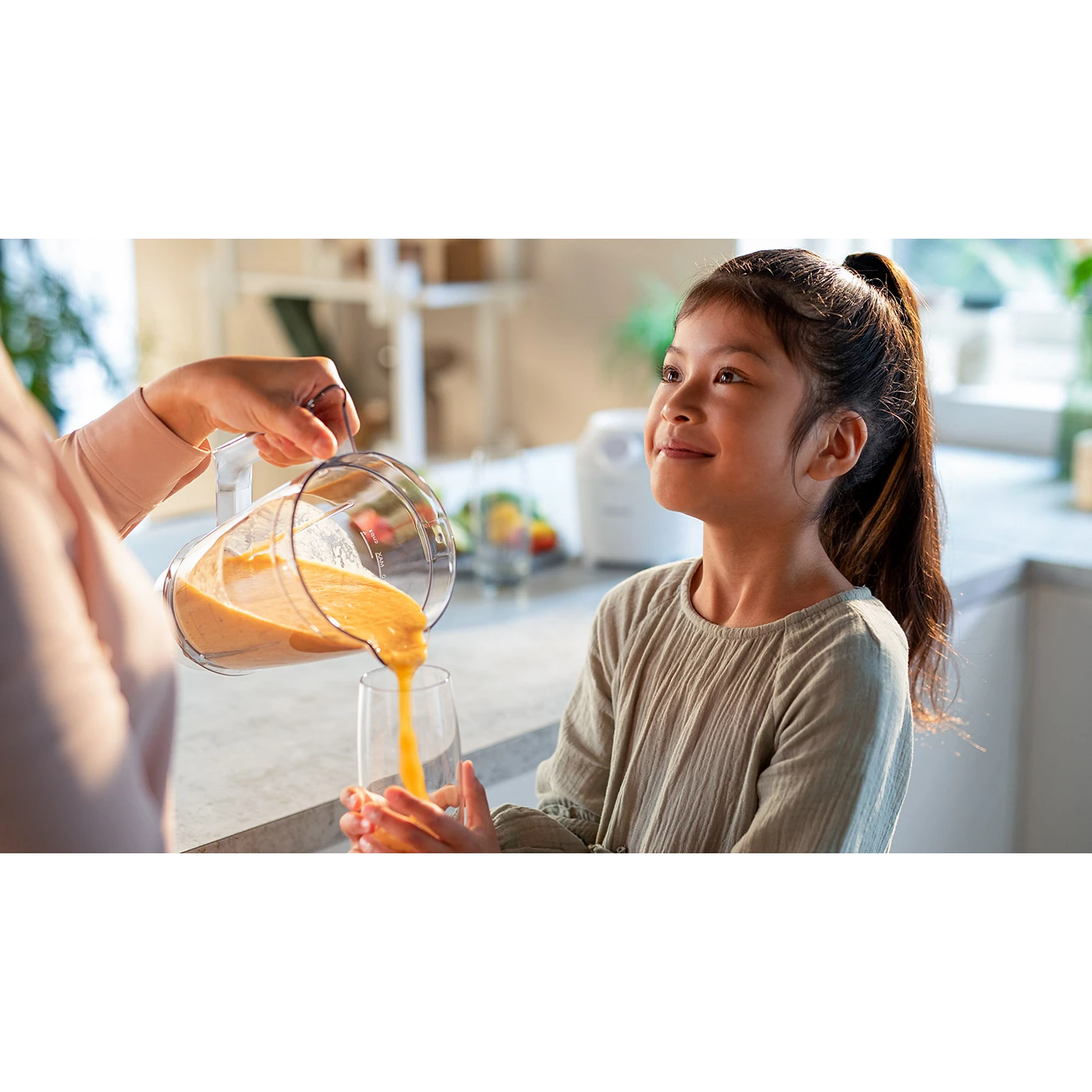 Máy xay Series 3000 HR2041/30 sở hữu công suất 450W, lưỡi dao thép không gỉ 4 cánh và công nghệ ProBlend độc đáo, giúp xay nhuyễn mịn mọi nguyên liệu chỉ trong 45 giây*. Máy đi kèm cối nghiền và cối xay thịt tiện lợi, đáp ứng đa dạng nhu cầu từ làm sinh tố, nghiền đá đến sơ chế thực phẩm. Thiết kế chắc chắn, dễ sử dụng, phù hợp với mọi gian bếp gia đình.