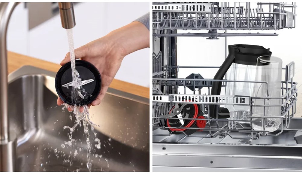 Các bộ phận như cối xay, lưỡi dao và nắp đậy có thể tháo rời dễ dàng và an toàn khi vệ sinh bằng máy rửa bát. Điều này giúp tiết kiệm thời gian lau chùi và đảm bảo máy luôn sạch sẽ, an toàn cho sức khỏe