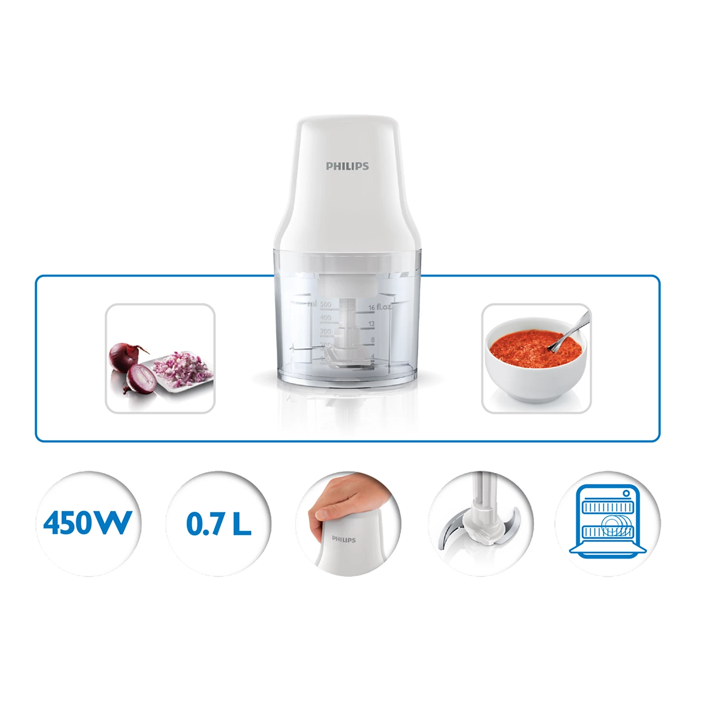 Philips HR1393/00 thuộc dòng Daily Collection, là máy xay thịt và thực phẩm nhỏ gọn, phù hợp với nhu cầu chế biến hằng ngày của gia đình. Với động cơ 450W, lưỡi cắt thép không gỉ sắc bén và thao tác ấn xuống đơn giản, máy giúp bạn xay thịt, rau, gia vị, đậu phộng... chỉ trong vài giây.