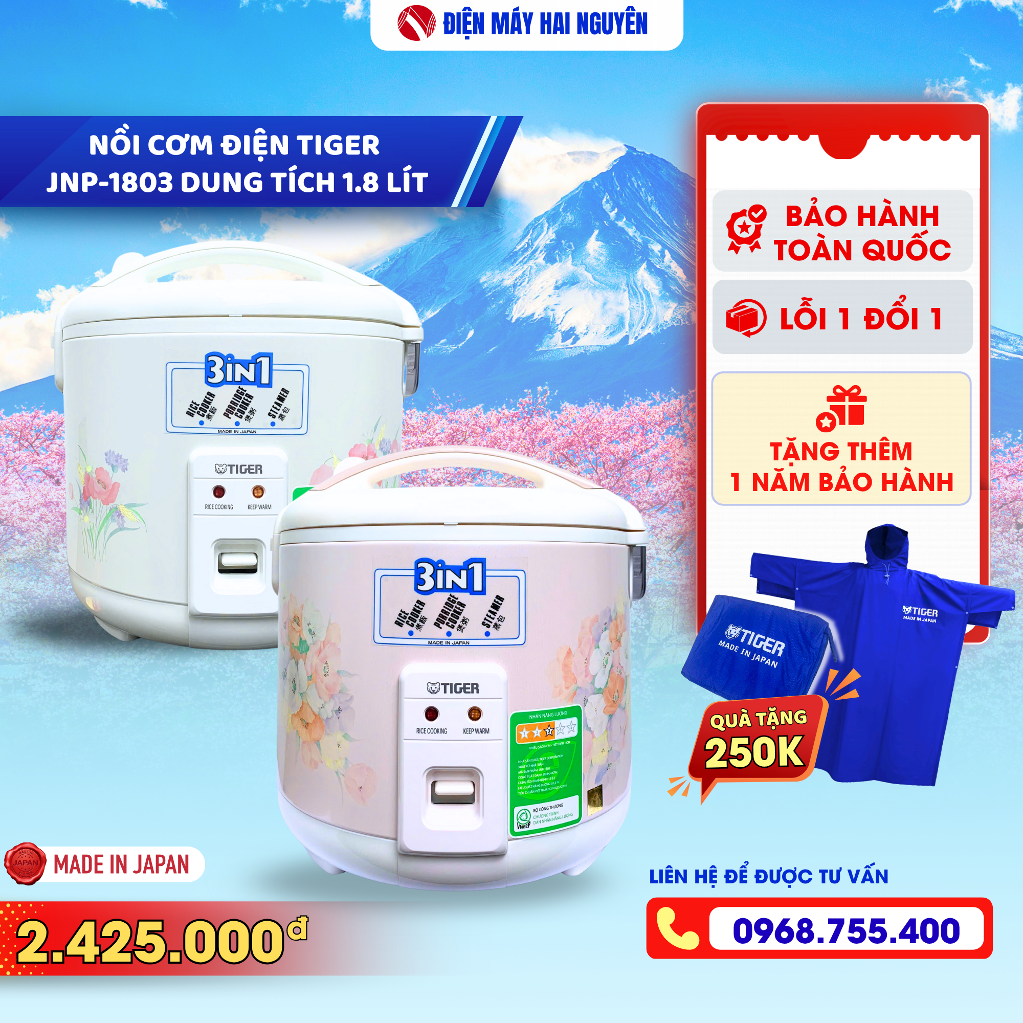 Nồi Cơm Điện Nhật Bản 1.8 lít Tiger JNP-1803 - Tiện Lợi, Thông Minh, An Toàn
