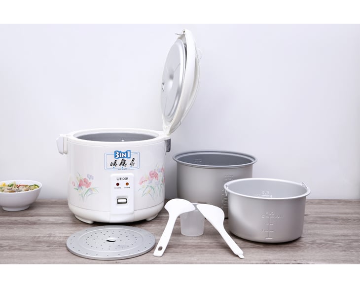 Bộ phụ kiện gồm: cốc đong gạo, muỗng xới cơm và nồi hấp/cháo, hỗ trợ người dùng nấu nướng thuận tiện hơn mỗi ngày.