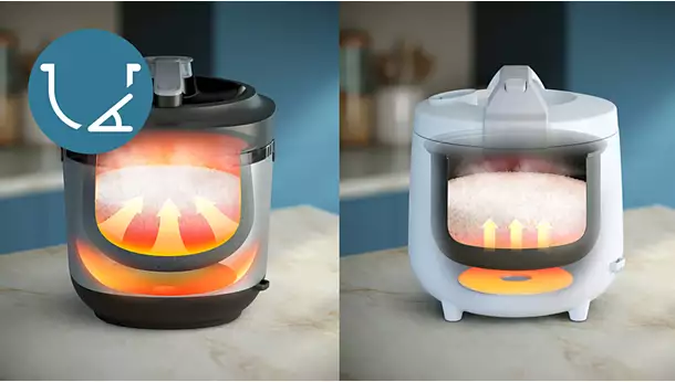 Đáy tròn 60⁰ tăng 50% diện tích gia nhiệt, giúp nhiệt lan tỏa đều để mọi hạt gạo chín thơm ngon.