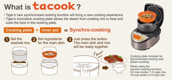 Tính năng Tacook giúp bạn nấu cơm và hâm nóng thức ăn cùng lúc, tiết kiệm thời gian. Ngoài nấu cơm, nồi cơm còn có nhiều chế độ như hầm cháo, sẽ giúp cơm luôn ấm nóng, thơm ngon.