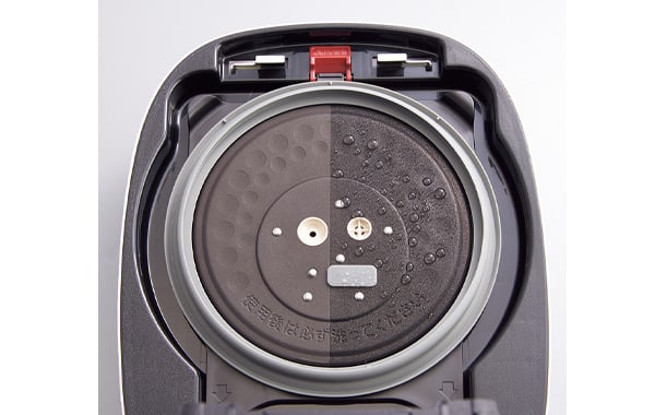 Nắp trong chống thấm nước: Giúp hơi ẩm bay hơi nhanh, tránh nhỏ nước ngược xuống cơm trong chế độ giữ ấm. Lớp phủ đặc biệt cũng giúp giữ cơm mềm ngon lâu hơn.