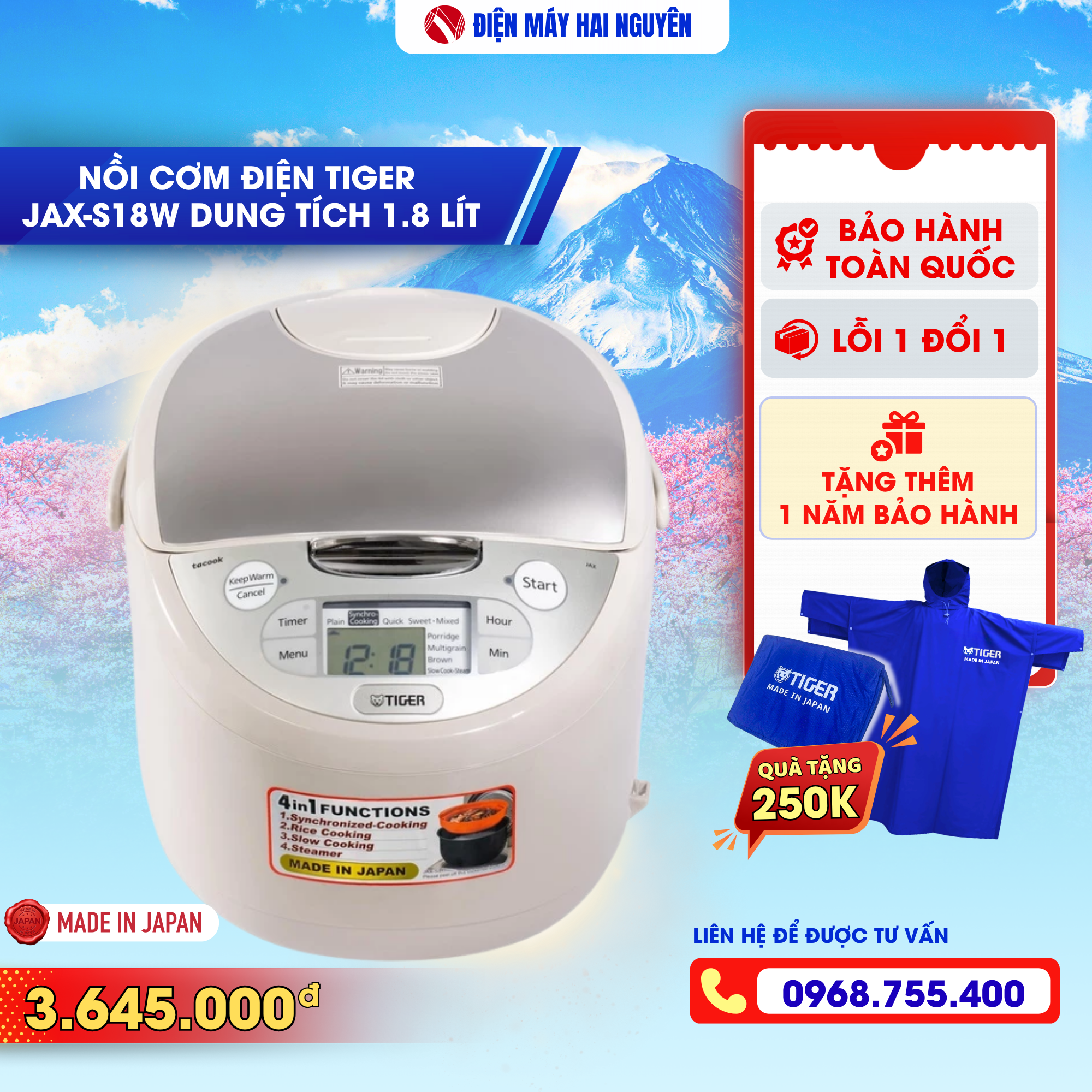 Trải nghiệm nấu ăn mới với nồi cơm điện Tiger JAX-S18W. Thiết kế sang trọng, tính năng hiện đại giúp bạn có những bữa cơm ngon miệng và ấm cúng bên gia đình.