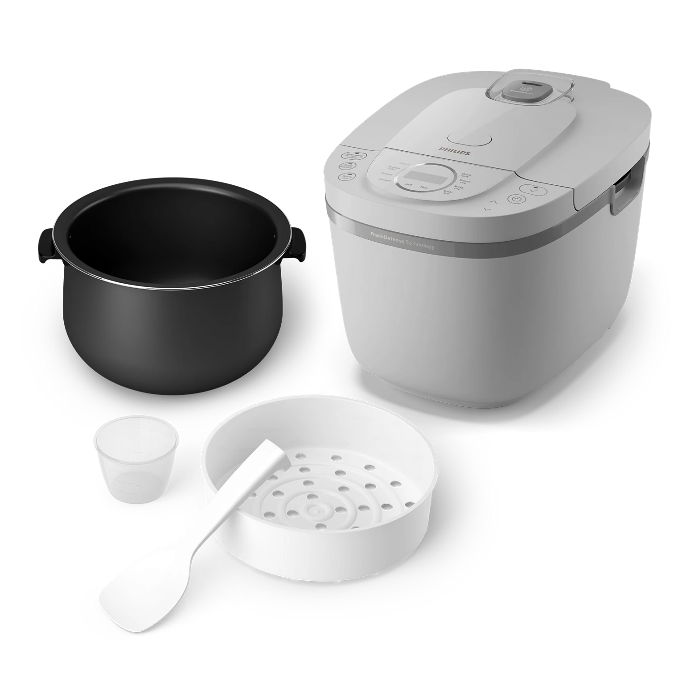 Nồi cơm kỹ thuật số Philips Series 3000 HD4719/32 mang đến giải pháp nấu ăn hiện đại, giúp cơm luôn tơi xốp, thơm ngon và giữ được hương vị suốt cả ngày. Với dung tích lớn 1,8 lít, công nghệ FreshDefense tiên tiến, nồi cho phép giữ cơm trắng và mềm trong tối đa 48 giờ. Bên cạnh đó, 12 menu nấu tự động và thiết kế nồi hình cầu kết hợp hệ thống nhiệt 3D giúp món ăn được chín đều, đậm vị và giàu dinh dưỡng.