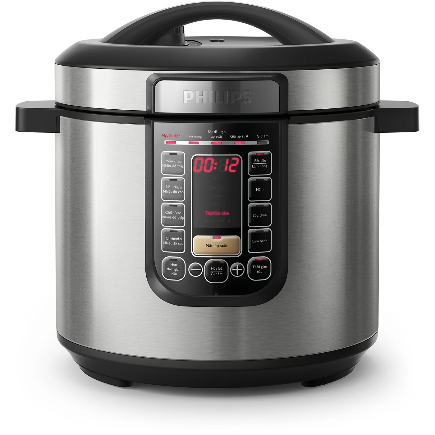 Sau khi nấu xong, nồi tự động giữ ấm lên đến 12 giờ (trừ chế độ làm sữa chua và xào chậm/áp chảo), giúp món ăn luôn nóng hổi khi thưởng thức.