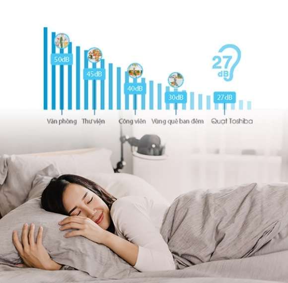 Ở chế độ "Silent", quạt vận hành cực kỳ êm, độ ồn chỉ 27 dB, phù hợp cho phòng ngủ, người lớn tuổi hay trẻ em, giúp đảm bảo giấc ngủ ngon và không bị làm phiền bởi tiếng động cơ.