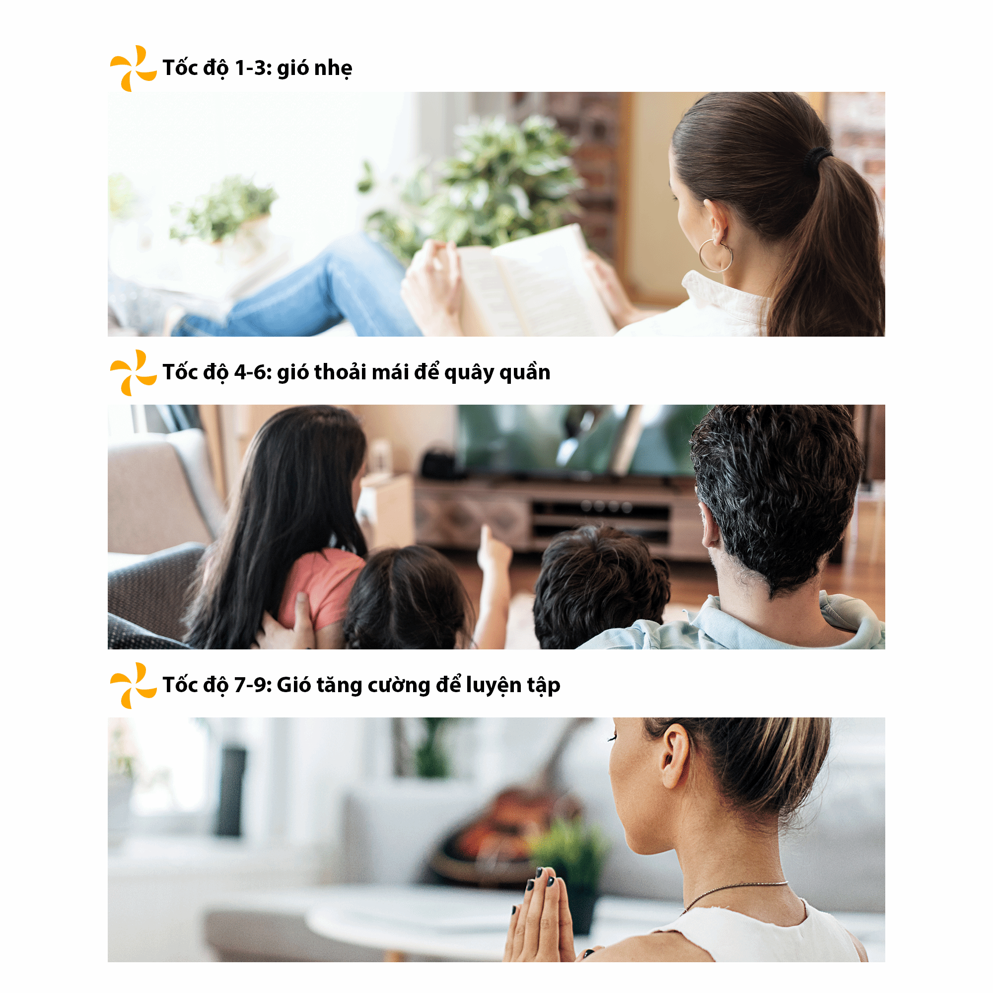 | Chế độ gió | Nhiều cấp độ, có gió tự nhiên |