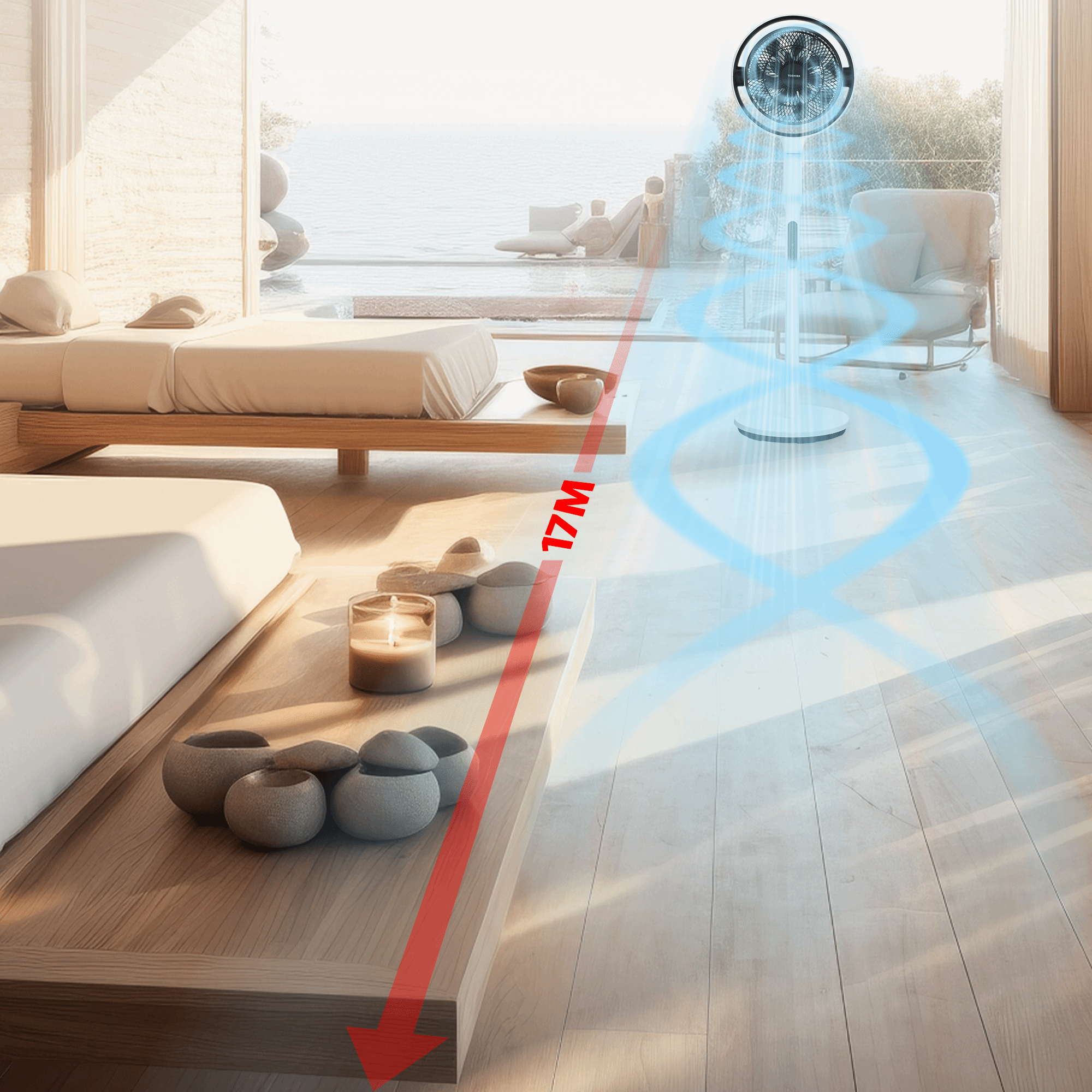 Với thiết kế cánh quạt mạnh mẽ và công suất lớn, Toshiba F-DSC80XVN(W) có khả năng đẩy luồng gió xa đến 20m, giúp không khí trong phòng được lưu thông đều, làm mát nhanh và tiết kiệm năng lượng khi sử dụng kèm máy lạnh.