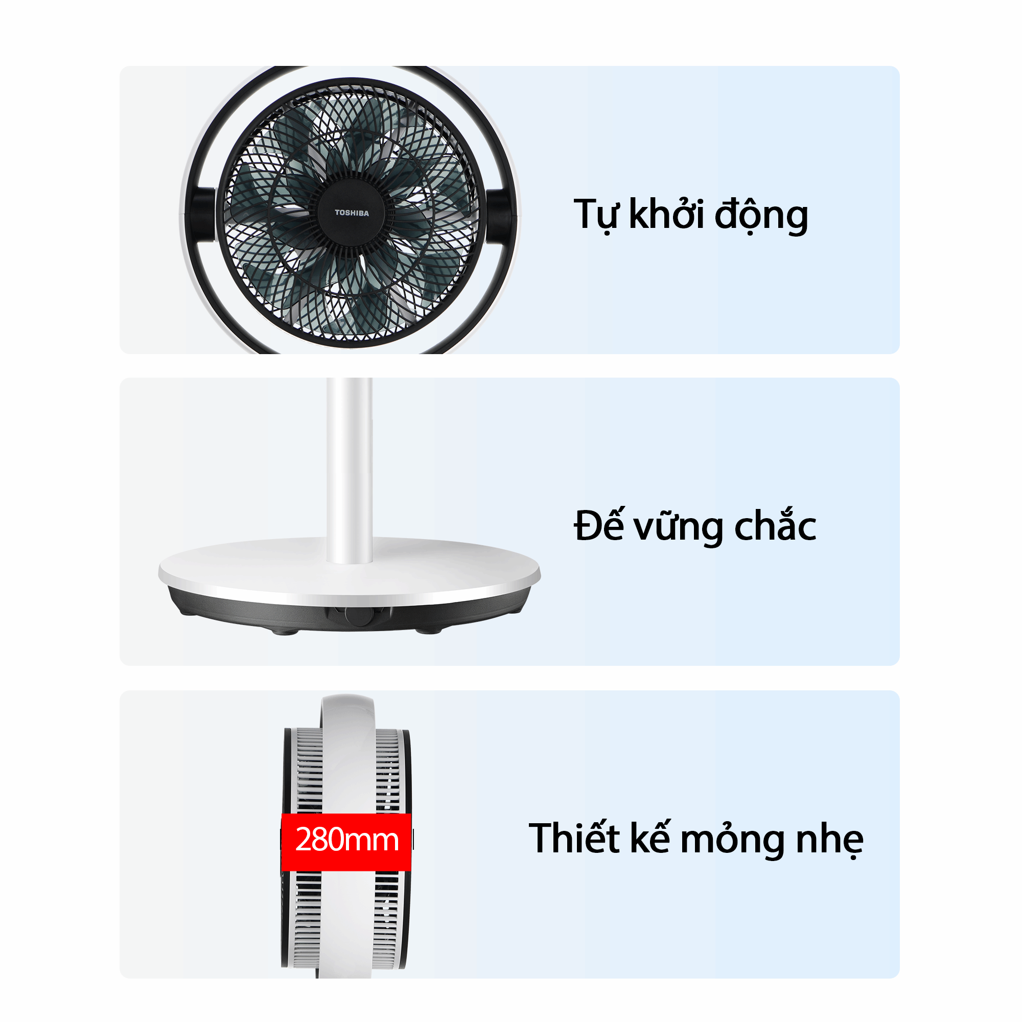 Quạt tuần hoàn Toshiba F-DSC80XVN(W) là lựa chọn lý tưởng cho gia đình hiện đại nhờ thiết kế nhỏ gọn, vận hành êm ái và khả năng làm mát luồng gió xa đến 20m. Sản phẩm phù hợp cho cả phòng khách, phòng ngủ hoặc sử dụng kết hợp với điều hòa để tối ưu hiệu quả làm mát, tiết kiệm điện.
