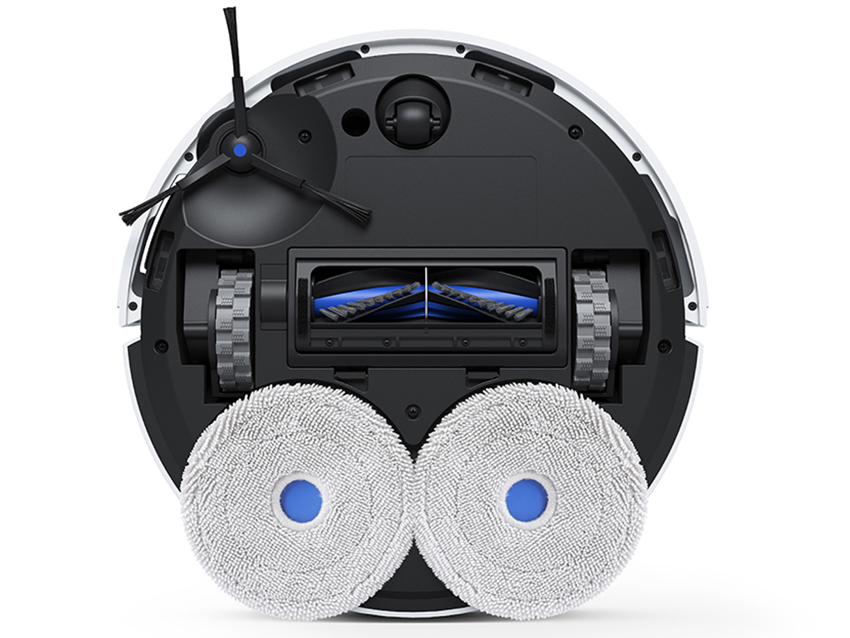Hệ thống lau kép với 2 tấm xoay tốc độ cao mô phỏng thao tác lau tay. Robot phân phối nước đều, nhấn lực ổn định và tự nâng khăn khi gặp thảm, đảm bảo làm sạch sâu mà vẫn bảo vệ bề mặt sàn.
