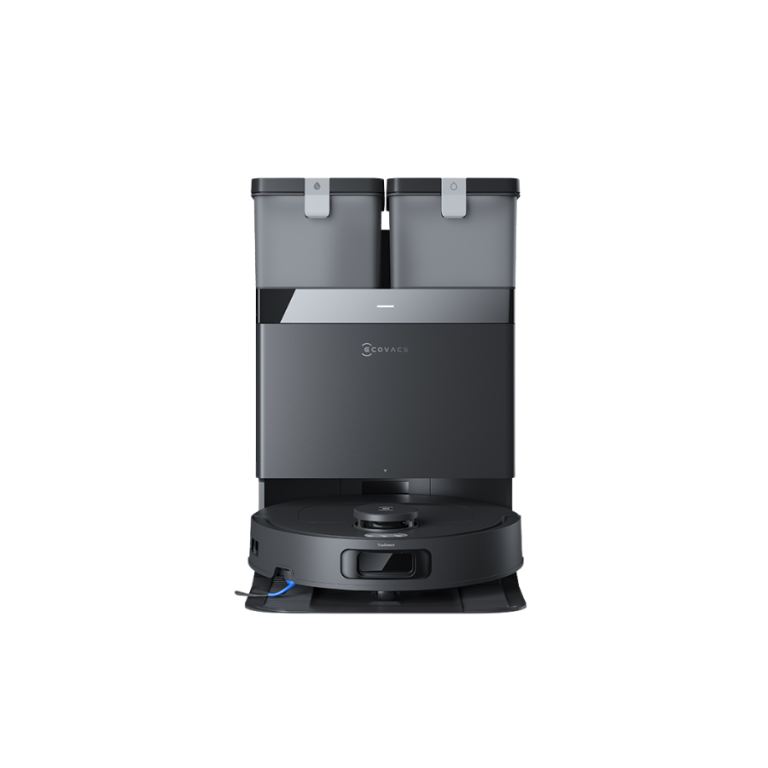 Trạm sạc OMNI nhỏ gọn, tối giản, tích hợp nhiều chức năng: giặt giẻ bằng nước nóng 75°C, sấy khô 45°C, tự động hút bụi vào túi chứa 3L, tự pha dung dịch lau sàn chuẩn tỉ lệ 200:1 và hẹn giờ sạc thông minh ngoài giờ cao điểm.