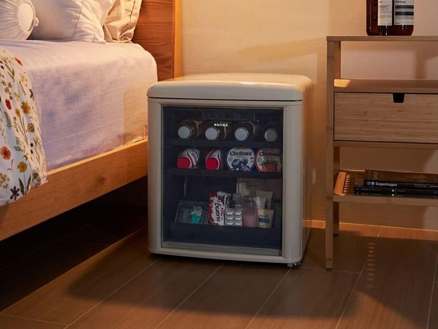 Kadeka KP115ER sở hữu kiểu dáng tủ đứng độc lập, nhỏ gọn, phù hợp đặt tại phòng khách, phòng ăn hoặc hầm rượu. Cửa kính cường lực hai lớp vừa tăng tính thẩm mỹ vừa đảm bảo khả năng cách nhiệt vượt trội, giúp rượu luôn được bảo quản ổn định.